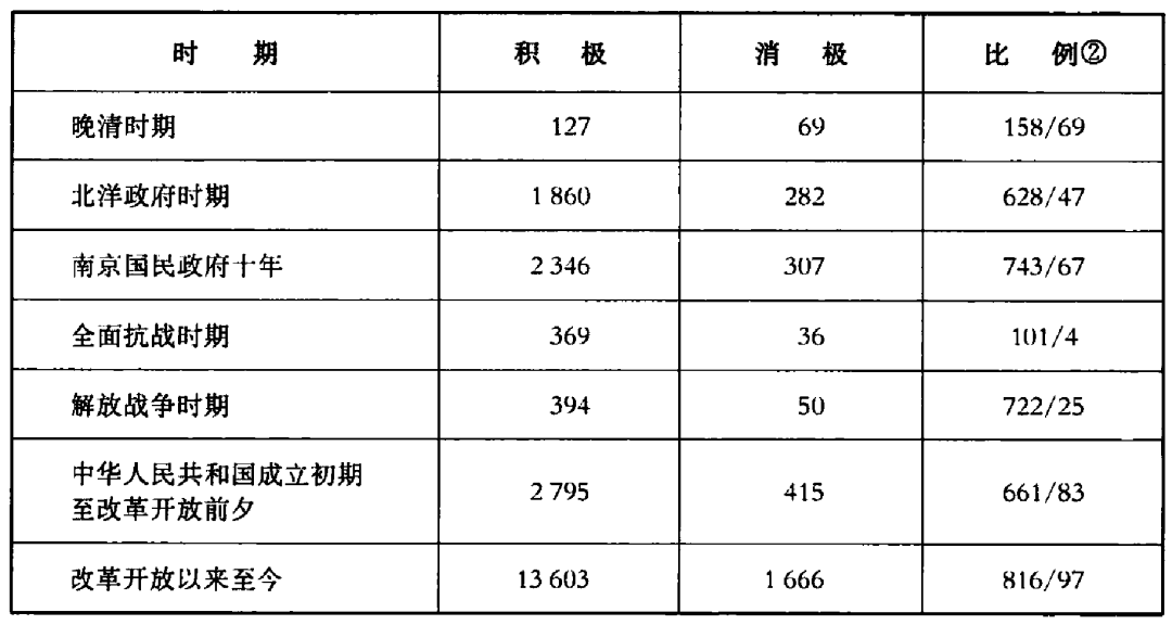 本文情感分析的数据来源于中心词,使用Python代码在各历史时期语料中进行例句抽取,由于《申报》在1906年以后才出现了标点符号,因此本文以中心词为中心、抽取中心词前后40个语言单位,得到各时期的例句数据。各时期积极与消极例句数如表4所示。