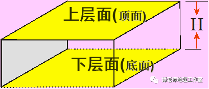 2. 岩层的厚度为该岩层顶面与底面之间的垂直距离。露头的水平宽度取决于岩层的厚度和地面坡度的变化。