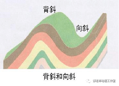 1. 背斜 在形态上为一个弧顶向上的弯曲,中心部分为老地层,两侧地层依次变新。