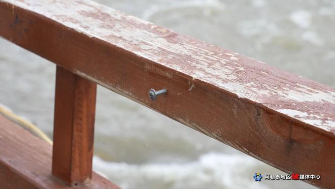 在阿勒泰市全季体育公园,记者看到部分木栈道围栏松动,靠近河边的观景台有两处围栏出现严重松动,部分木质栏杆向外侧倾斜严重,固定螺栓外露,且存在划伤风险。